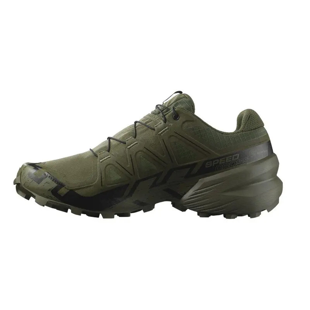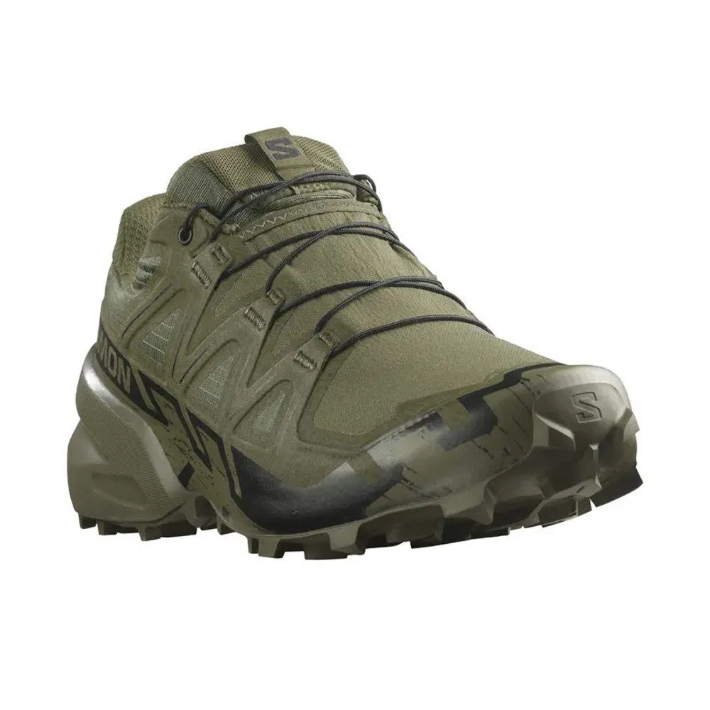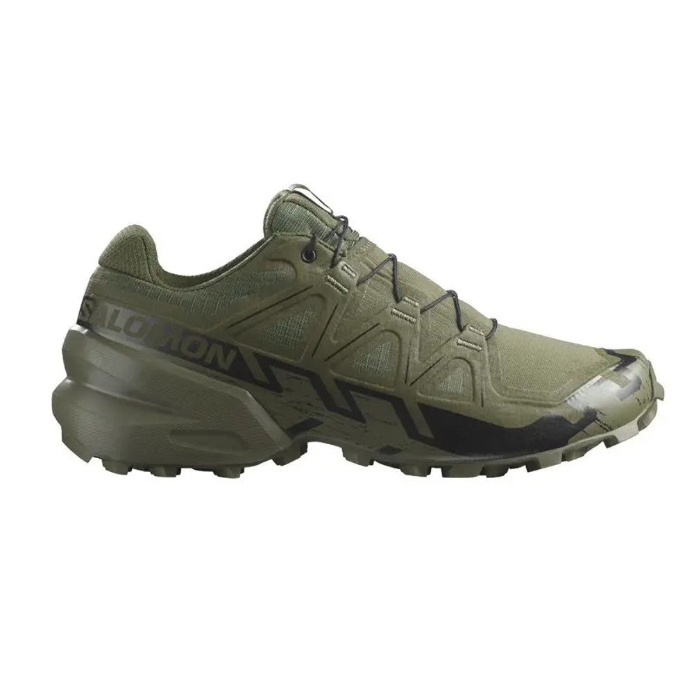 Forces Speedcross 6 Herrenschuh Olive Green von Salomon ist ein leichter, niedriger und flexibler taktischer Trailschuh, der für Einsätze und Aufgaben konzipiert ist, bei denen es auf Geschwindigkeit im Gelände ankommt. Dieses Modell ist mit den gleichen guten Eigenschaften wie die zivile Version konzipiert, jedoch mit einem taktischen Fokus, wie zB einer extra stark profilierten Laufsohle, die auch auf sehr nassem und schlammigem Fußabdruck erhöhten Halt gibt.